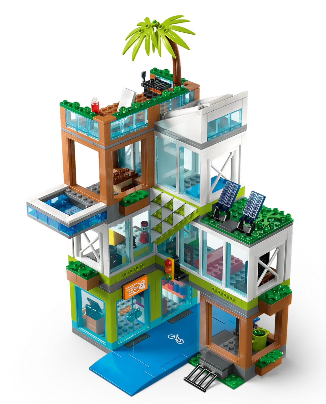 - Reconfigurable toy Apartment Building – This LEGO® City Apartment Building (60365) comes with combinable modular rooms and fun characters for kids who love realistic play