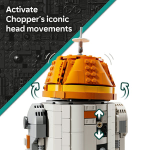 - LEGO® Star Wars™ buildable toy model kit for kids – Create a playful display with a buildable figure of beloved astromech droid Chopper (C1-10P), as seen in the Star Wars: Ahsoka™ adventure series