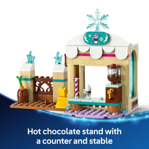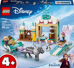 Winter fun awaits Disney’s Frozen fans aged 4 and up as they learn to build with this LEGO® ǀ Disney Frozen Anna’s Sleigh Adventure (43256) building playset, with a hot chocolate stand, stable, sleigh, small sled, sledding hill and other fantasy building toy items.