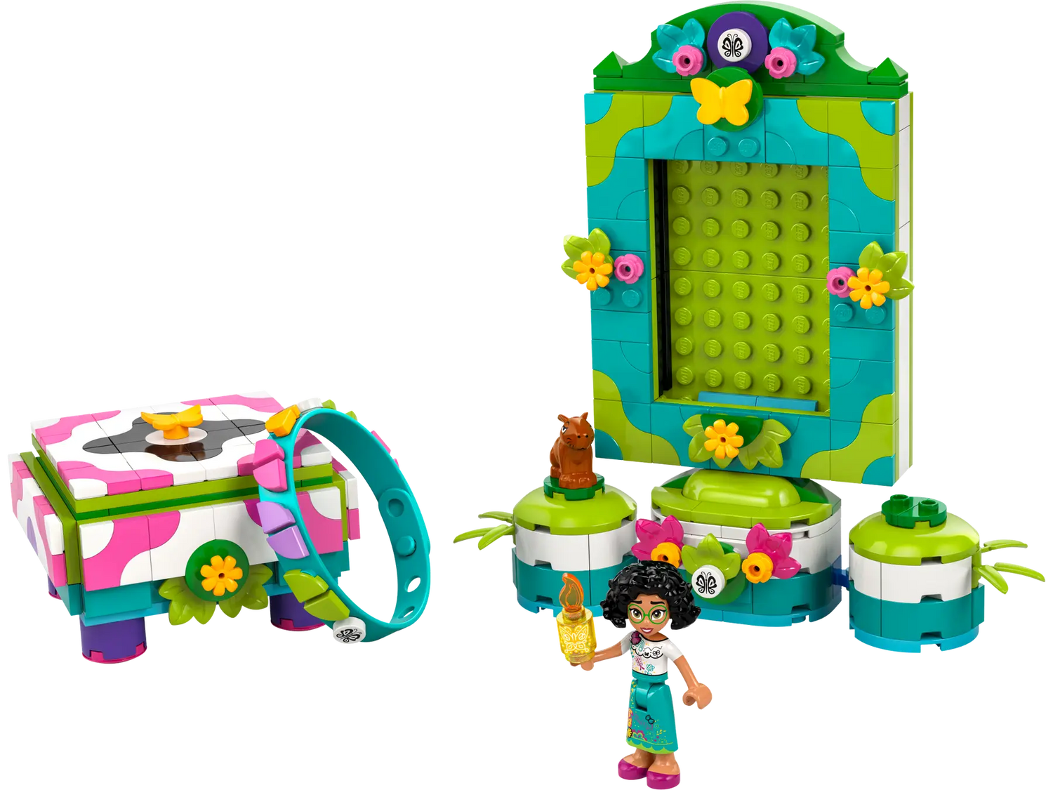 - LEGO® picture frame – The buildable set includes a small jewelry box, photo frame with stand and extra clips, wearable bracelet, plus a Mirabel LEGO ǀ Disney Encanto mini-doll figure