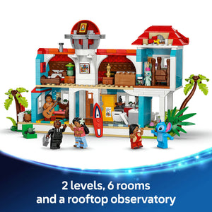 Amazing adventures await fans and kids aged 9 plus in this Lilo and Stitch Beach House (43268) LEGO® ǀ Disney building kit playset.