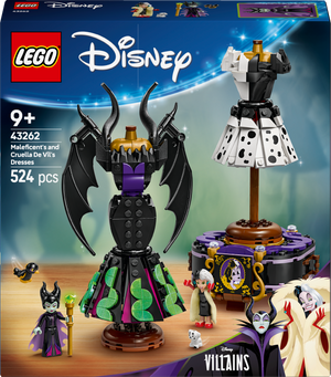 Inspire creativity in Disney fans aged 9 plus with this Maleficent’s and Cruella De Vil’s Dresses (43262) LEGO® ǀ Disney building set.