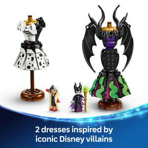 It features the iconic Disney villains’ buildable dresses, 2 dress stands and a display stand with a hidden space for the LEGO ǀ Disney minidoll characters, their pets and accessories. The cool construction toy set has elements to create 3 different designs on the stand, plus profile tiles of Maleficent and Cruella De Vil.