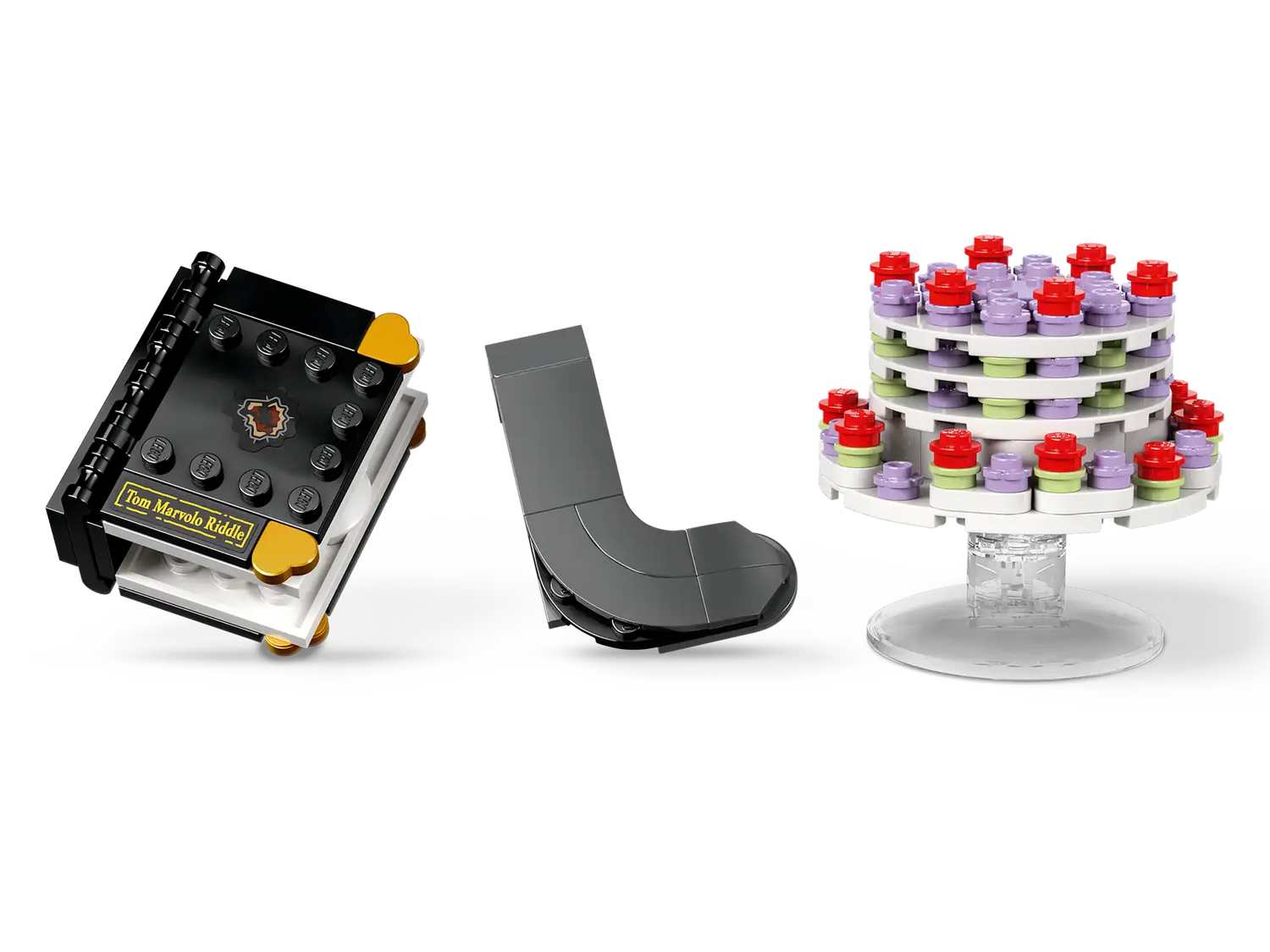 - Iconic accessories – Kids can relive classic movie moments as they build Aunt Petunia’s ‘floating’ pudding cake and a detailed model of Tom Riddle’s diary with Harry Potter’s sock