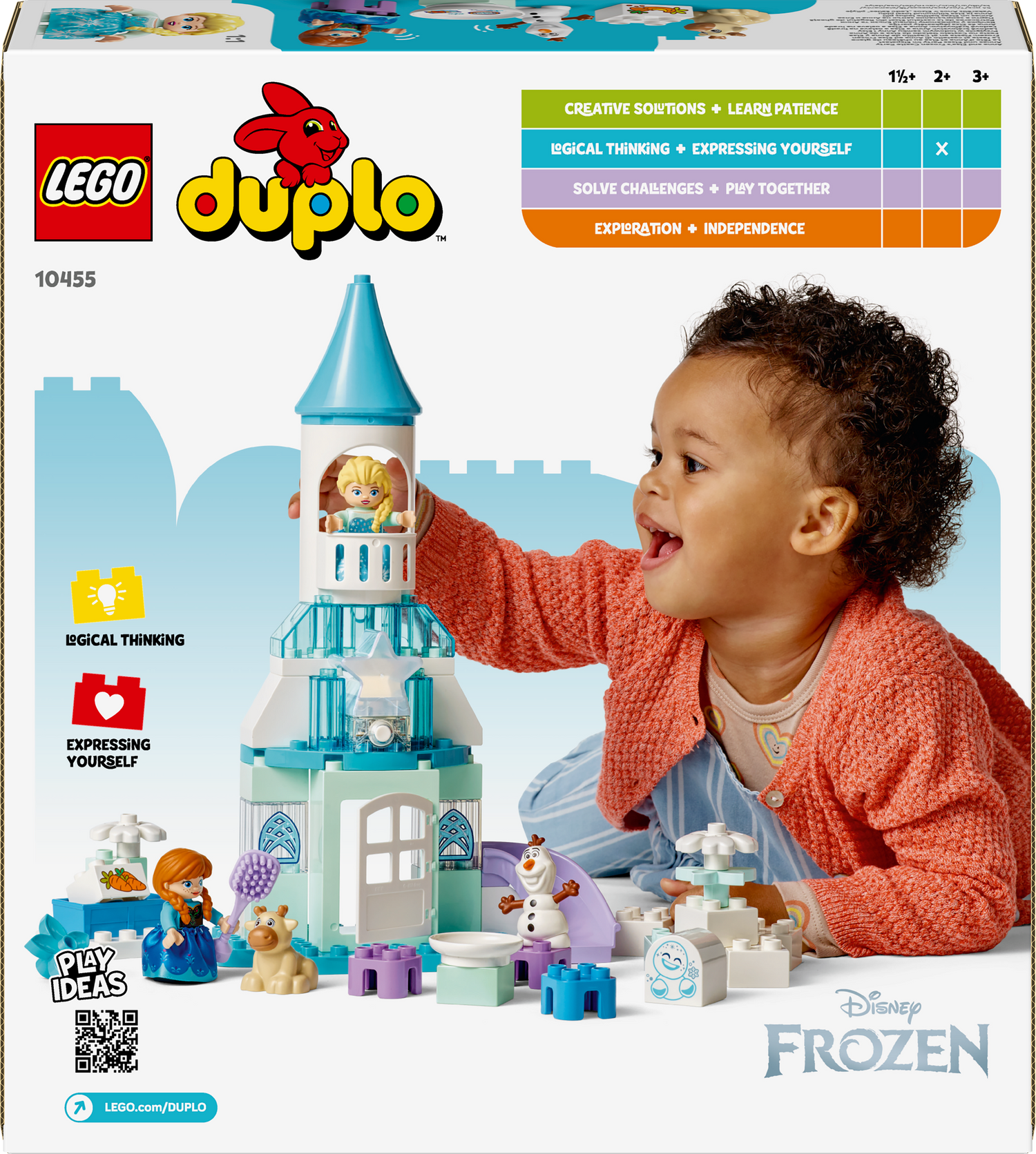 It comes with LEGO DUPLO │ Disney characters Elsa, Anna, Marshmallow the Snowgie, Baby Sven and Olaf, giving preschoolers limitless pretend-play opportunities to imagine castle life and caring for baby Sven.