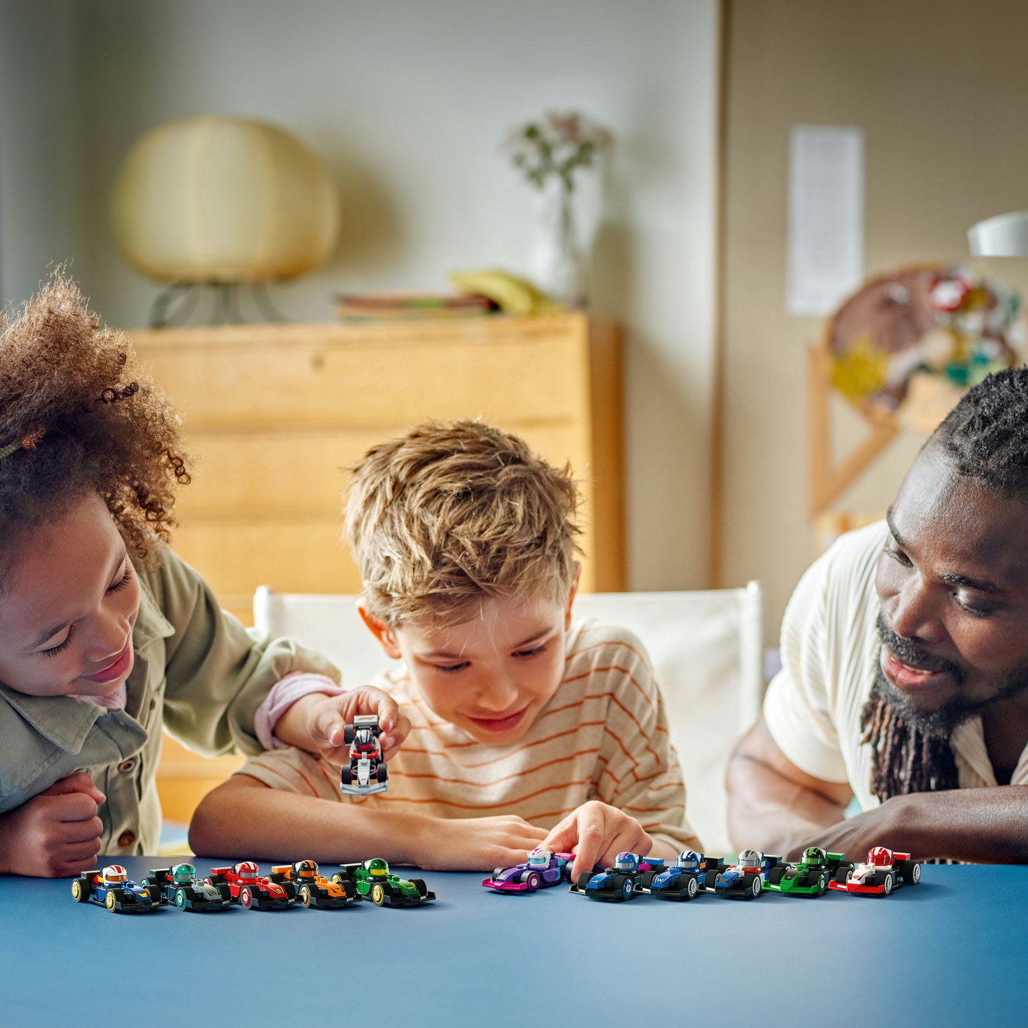 There is 1 surprise LEGO F1 Collectible Race Car in each vehicle kit and a total of 12 to collect: an F1 car, an F1 ACADEMY™ car, and 10 cars from the Formula 1 teams: RB20, Mercedes-AMG, Ferrari, McLaren, Aston Martin, Alpine, Williams, VCARB, Sauber and Haas.