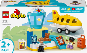This LEGO® DUPLO® airport playset has lots of features to spark imaginary play. It includes a security desk where toddlers can pretend-play scanning the suitcase and pushing it down the chute, an air traffic control tower and a movable airplane toy that fits the teddy, child and pilot figures.