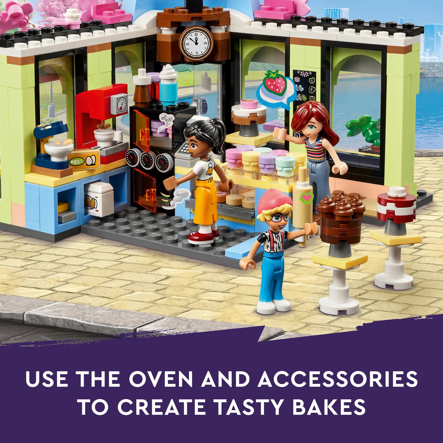 - Café role-play toy for kids – This Heartlake City Café building set for girls and boys aged 6+ comes with 3 mini-dolls and a dog figure, plus food-themed accessories and a scooter for imaginative play