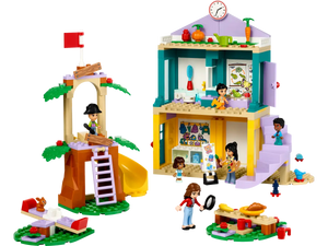- Pretend-play classroom playset for girls and boys aged 4 and up – The Heartlake City Preschool for kids comes with a buildable preschool, a seesaw, slide, art area, classroom and a rooftop garden