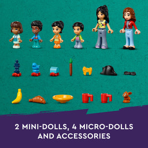 - Includes 2 mini-dolls and 4 micro-dolls – This pretend-play school comes with LEGO® Friends characters Liann and Colette, who care for Basem, Victoria, Peter and Alba, plus a bunny