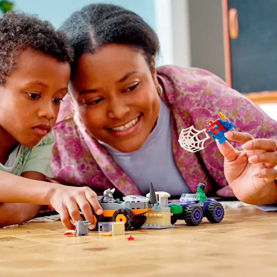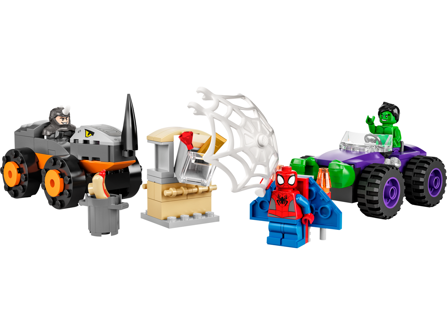 The LEGO Marvel Spidey And His Amazing Friends Hulk vs Rhino Truck Showdown (10782) building toy puts small Super Heroes in the driving seat as they race to save the day.
