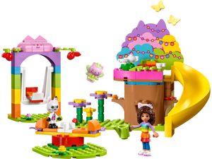 There are flowers for young gardeners to grow, plus a toy slide, swing and roundabout for the friends to play on. Gabby's Dollhouse accessories, including apples, a watering can, a teapot, cups and butterflies, inspire kids to explore imaginative role play.