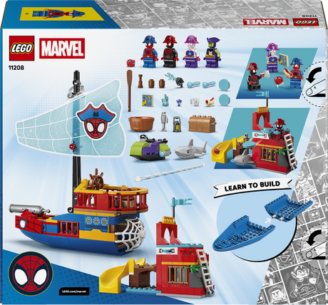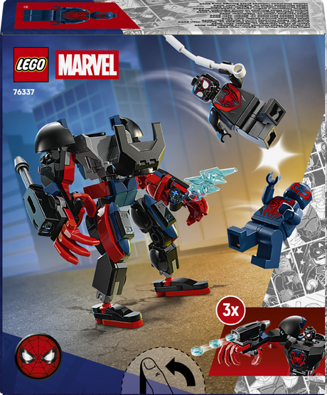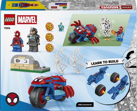 The set recreates action from the ’Dino-Webs’ season of the Spidey And His Amazing Friends TV show. It includes 2 Super Hero minifigures and 2 push-along dino-vehicles: Miles "Spin" Morales in a stegosaurus car and Electro in a dilophosaurus motorcycle.