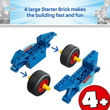 Inside the box, each bag contains bricks and a large Starter Brick for a quick-to-build model and character, so play gets started quickly. Intuitive instructions are provided in the form of a colorful picture-story guide.