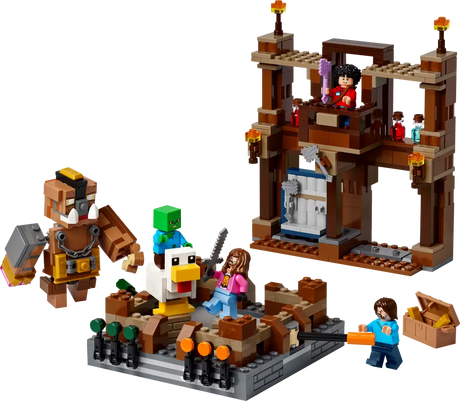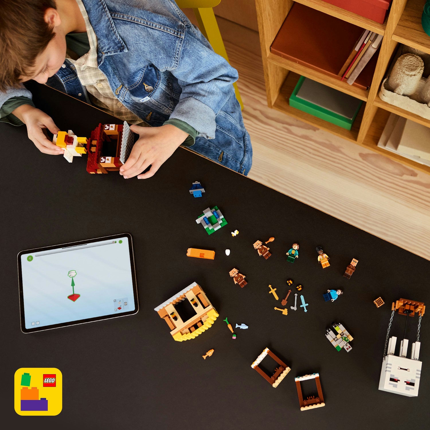 - Video game LEGO® set – When piglins launch missiles from their ghast balloon, causing the fountain to ‘explode’, kids must defend the villagers and Steve's fried chicken restaurant and crafting shack