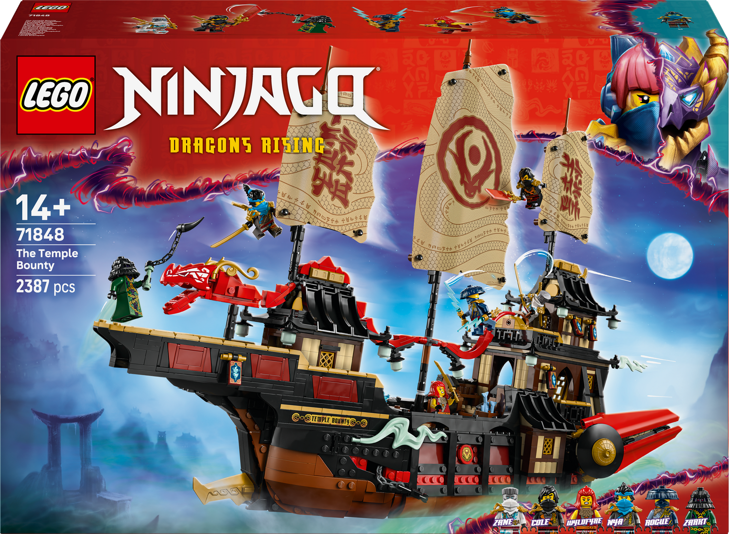 - Large NINJAGO® model for display and storytelling – Ninja fans aged 14 and up can recreate action from season 3 of the NINJAGO Dragons Rising TV show with The Temple Bounty ship toy