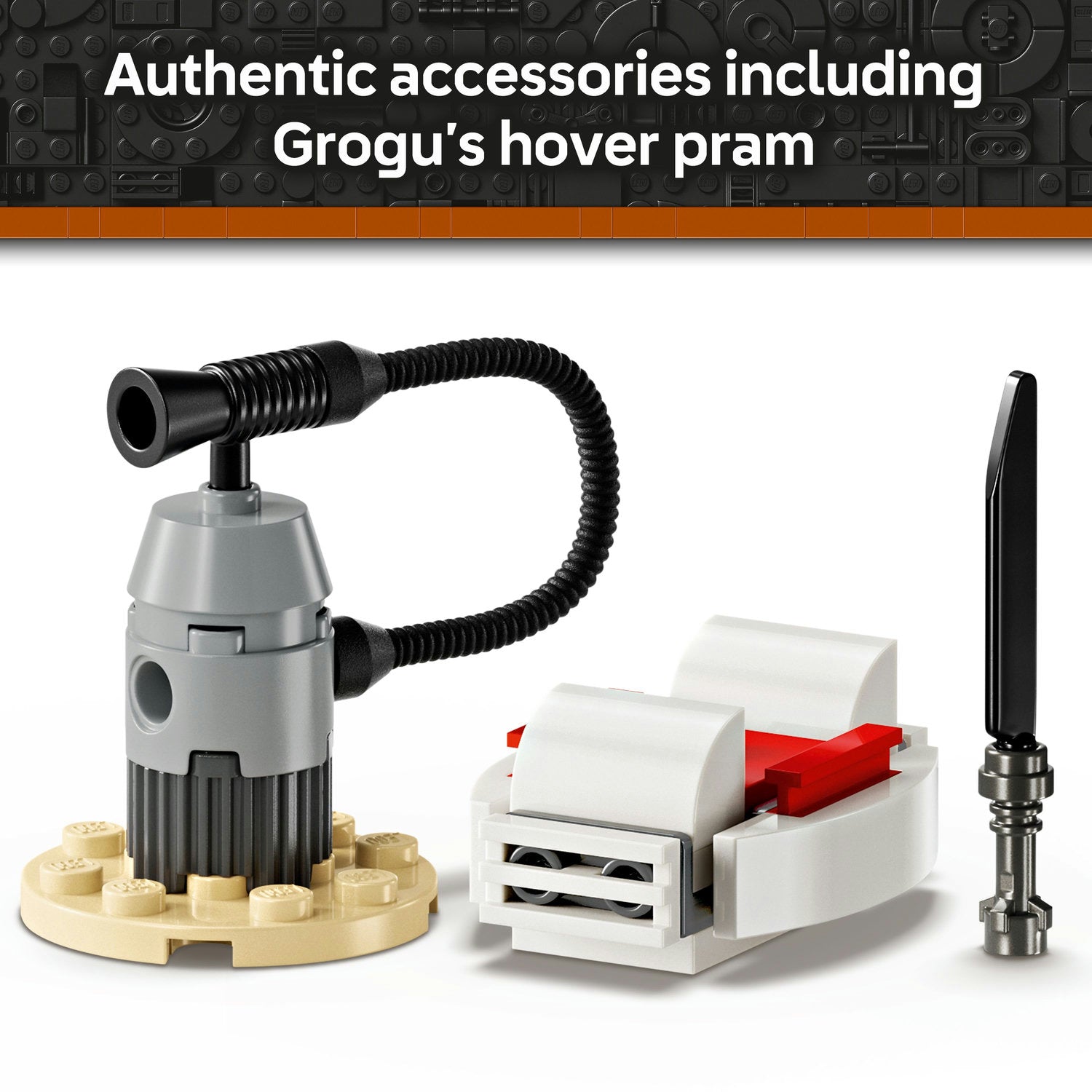 - Authentic, playful accessories – The Mandalorian has a darksaber and jetpack accessory element, Grogu has his hover pram, and the set also includes a buildable fuel station