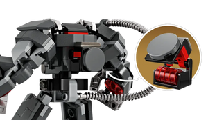 The mech’s chest opens to reveal a cockpit for the War Machine minifigure pilot. There are 3 stud shooters – 1 on the mech’s shoulder and 2 on its arms – and a storage box on its back for extra ammunition.