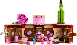 Kids scan the set’s hidden QR code to access unique LEGO® Wicked content and sing along to the “Popular” hit from the film. By placing the mini-dolls on the spinning stand, kids make the characters ‘dance’ along to the music! When the play is over, close the bedroom and transform it into Glinda’s trunk, which can be locked with a key!