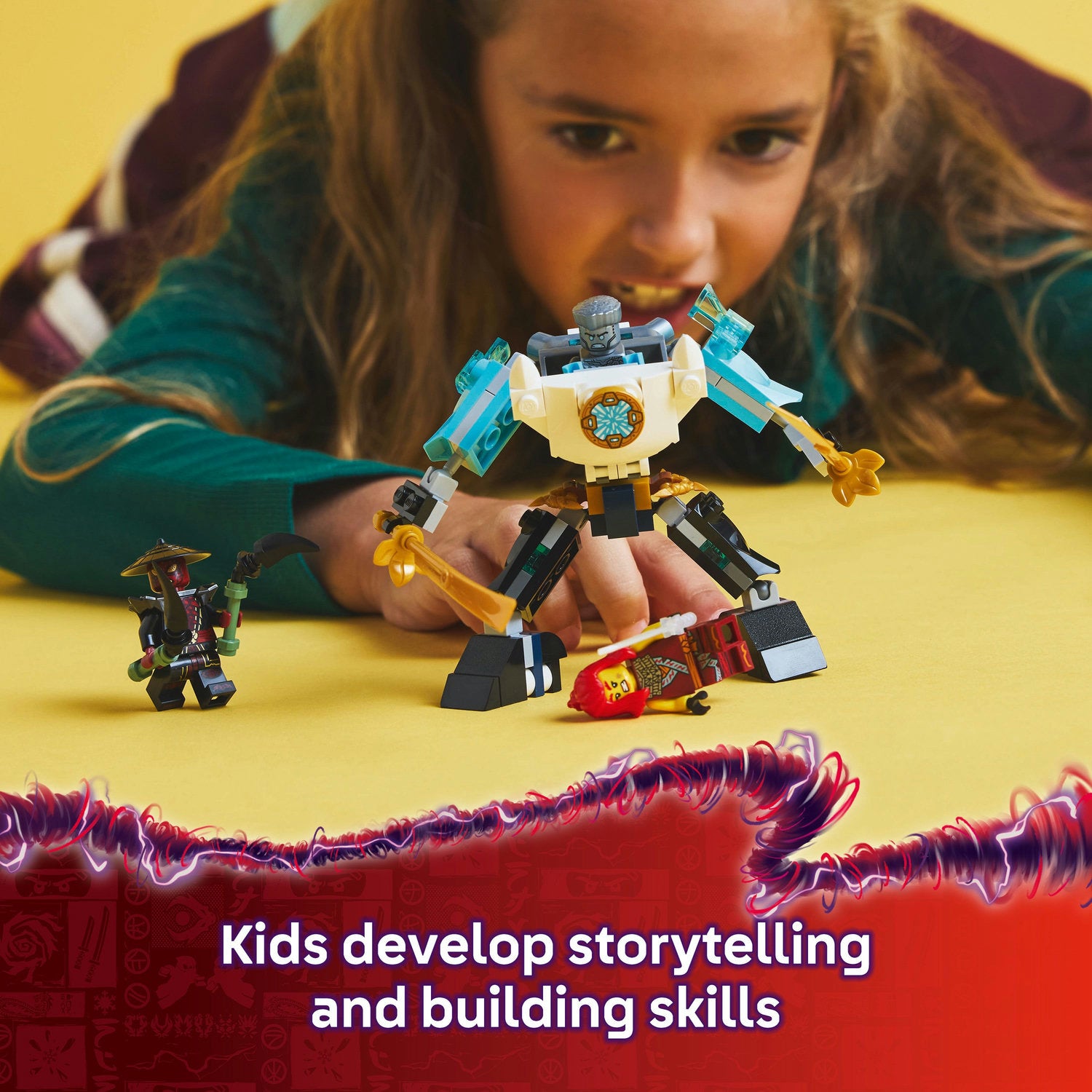 The LEGO® NINJAGO® Zane’s Battle Suit Mech (71827) pretend play toy set lets boys and girls aged 6 and up stage exciting action from season 3 of the NINJAGO Dragons Rising TV show.
