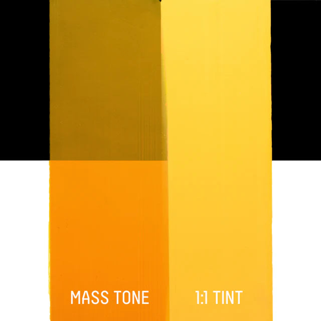 A clear, deep and luminescent yellow single pigment colour. It is a synthetic, organic pigment which gives excellent transparent glazes. The original pigment was first used by Dutch artists but has not been available since the 1920s and it's origins have always been surrounded in mystery and debate