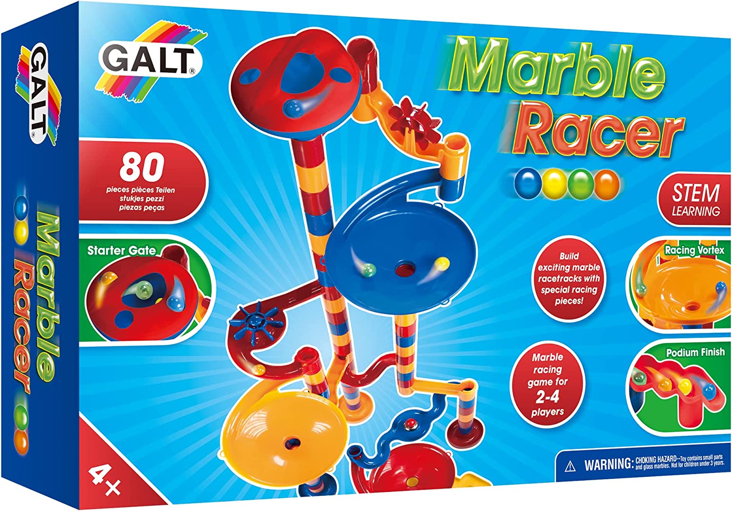 On your mark, get set, race! You and your friends can create your own excitement with the 80-Piece Marble Racer from Galt Toys