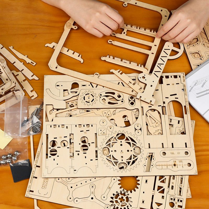 The real lift coaster with the system of cogs and gears, the Marble Squad 3D Puzzle from Robotime is a great challenge for kids and adults alike.