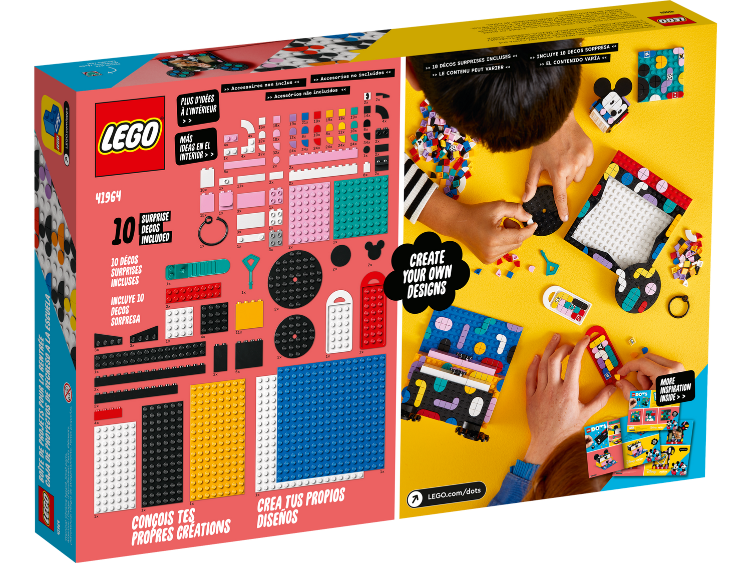 - Make, decorate, use – Wow any trendsetting kid or crafts fan with this LEGO® DOTS ǀ Disney Mickey Mouse & Minnie Mouse Back-to-School Project Box (41964). Creative fun starts when they open the box