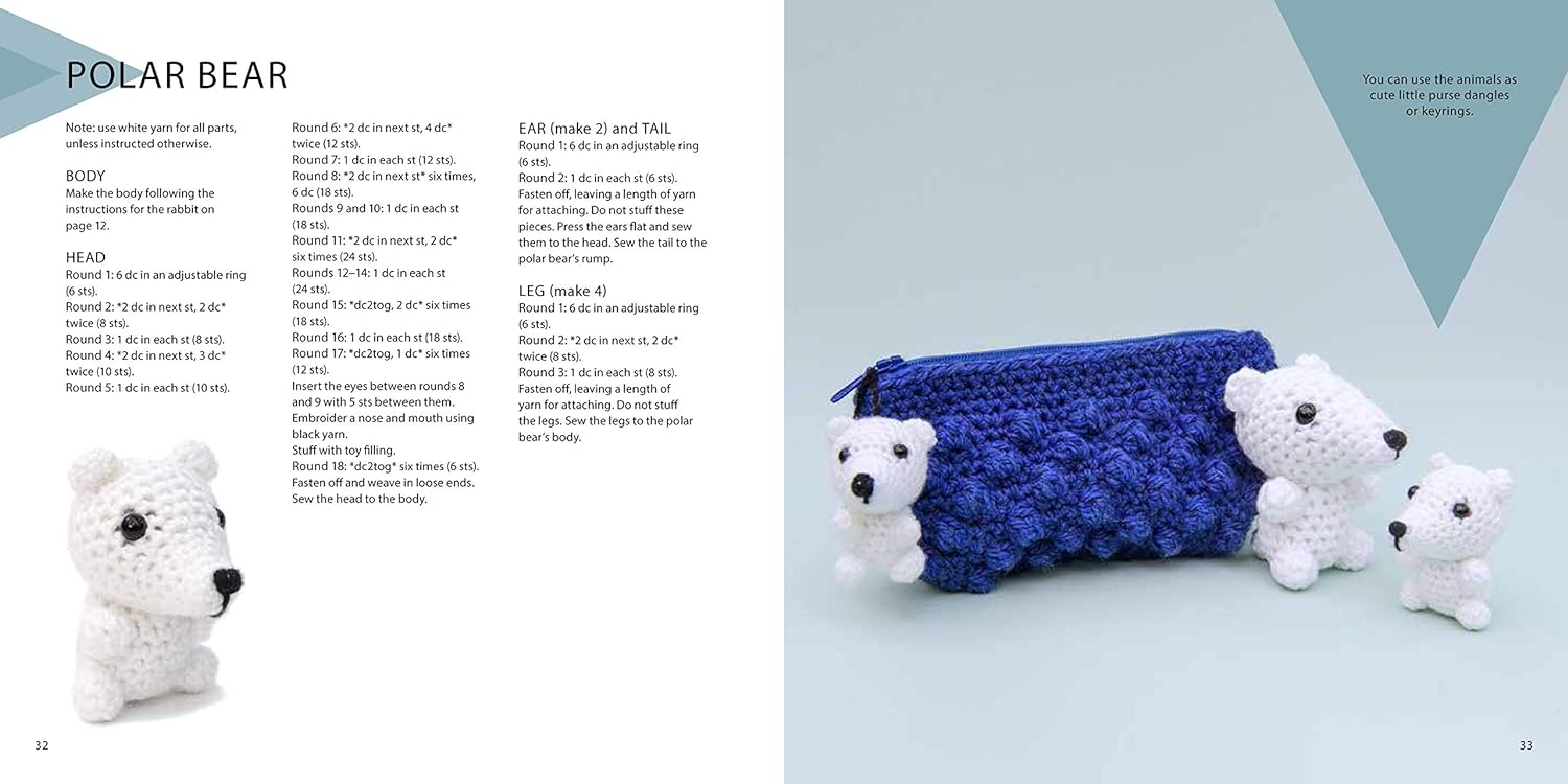 This charming book is full of wonderfully cute tiny animals, such as a dog, cat, camel, monkey and rabbit, that can be crocheted with small amounts of yarn in your stash - all you need is a crochet hook and some yarn. The animals can be used to hang on keyrings, baby buggies, watches, bag pendants, as little toy figures for a doll's house, or whatever you like. There are 26 cute little amigurumi animals to choose from, so there is plenty of choice!