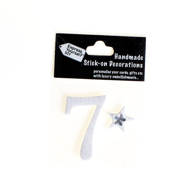 Self-adhesive stick-on decorative numbers finished in pearlescent glitter.