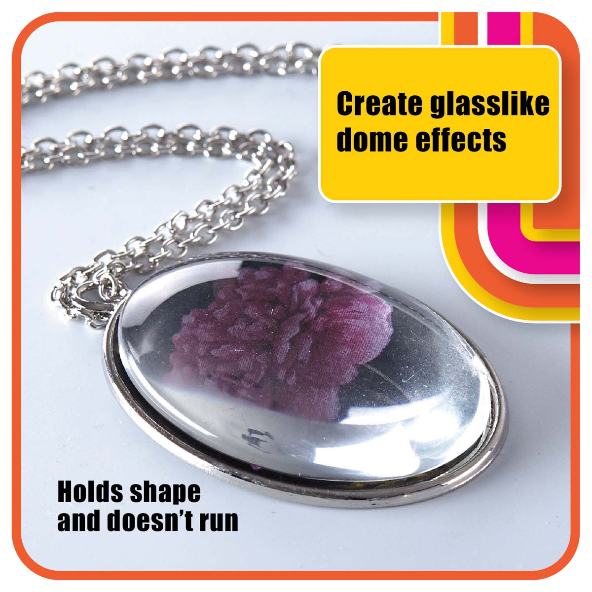 This epoxy-like formula creates a faux glass-like effect that dries clear with a 3D domed shape allowing the surface color to show through.