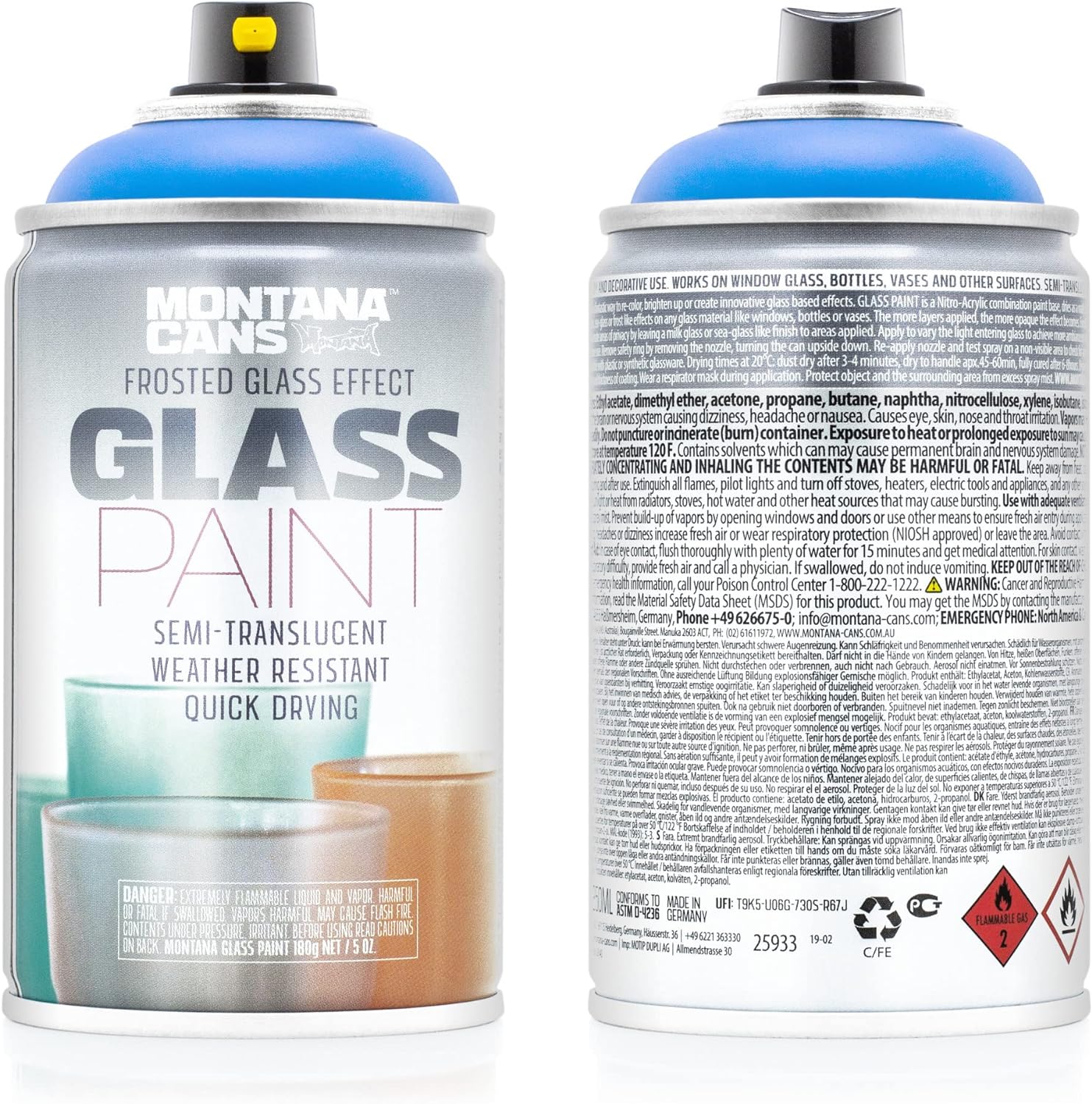 The Montana GLASS PAINT is a Nitro-Acrylic combination paint base that dries semi-transparent and matt after being applied. Available in nine different colours, GLASS PAINT is great for making shadow, frost or sea glass effects on any glass material like windows, bottles or vases.