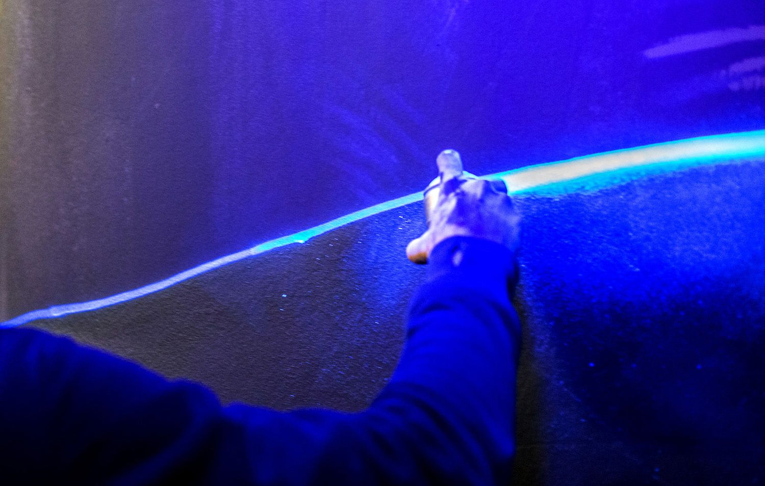 The GOLD Fluorescent range now consists of 7 fluorescent shades that glow in the dark under UV light. What appears to be an almost neutral white in daylight becomes a real eye-catcher in the dark under UV light!