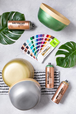 Not only are the Montana Metallic Effect colours ideal for application on functional objects such as bikes and furniture, they can also add a metallic flare to any creative or artistic project on paper, cardboard, primed canvas, wood, glass, metal, ceramics, porcelain, stone, acrylic and other paintable materials.