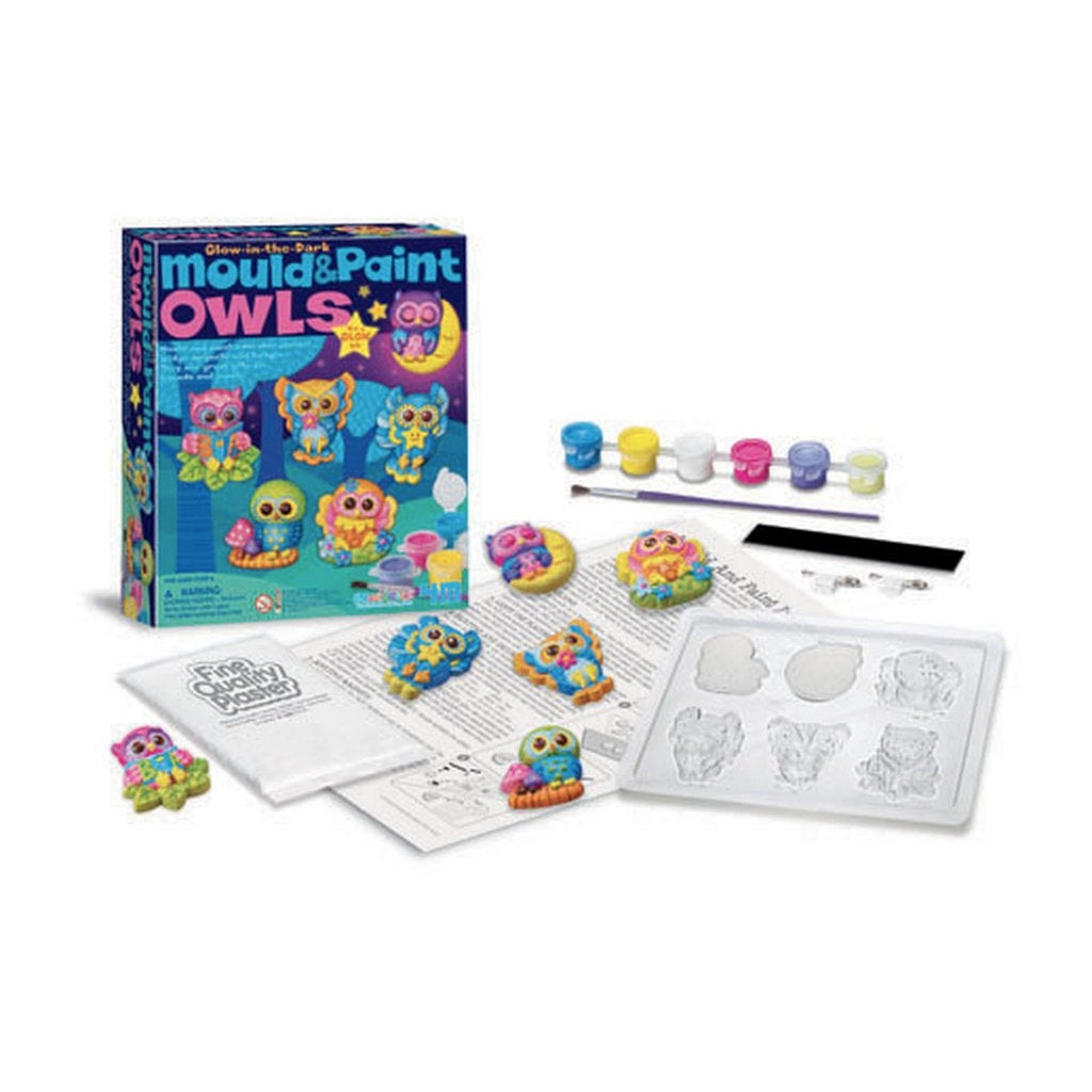 Mould and paint adorable glow in the dark owl figurine plaster fridge magnets and badges. They are great gifts for friends and family!