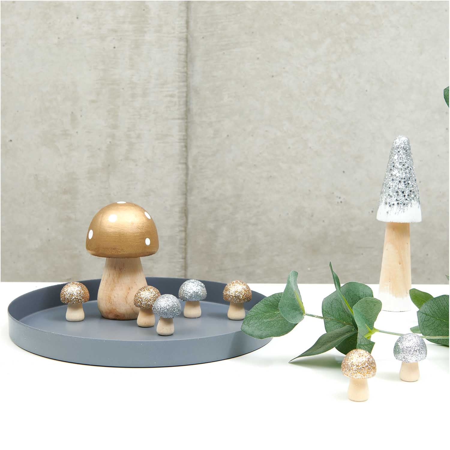 The mushrooms have a silver glitter coating and should not be missing in your autumn and Christmas decorations.