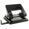 Economy metal hole punch. Twin-hole punch for 2-ring binders. Designed for medium duty use. Sturdy metal construction. Adjustable paper guide. Maximum capacity 12 sheets.