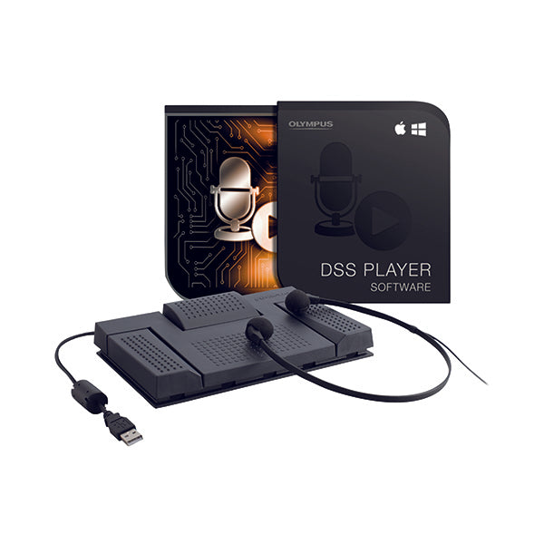 Olympus AS-2400 Transcription Kit AS-2400. For dedicated transcription needs. Each kit includes RS-28 footswitch E-103 under the chin head phone and transcription software module guarantees easy transcriptions of any DSSPro recordings.