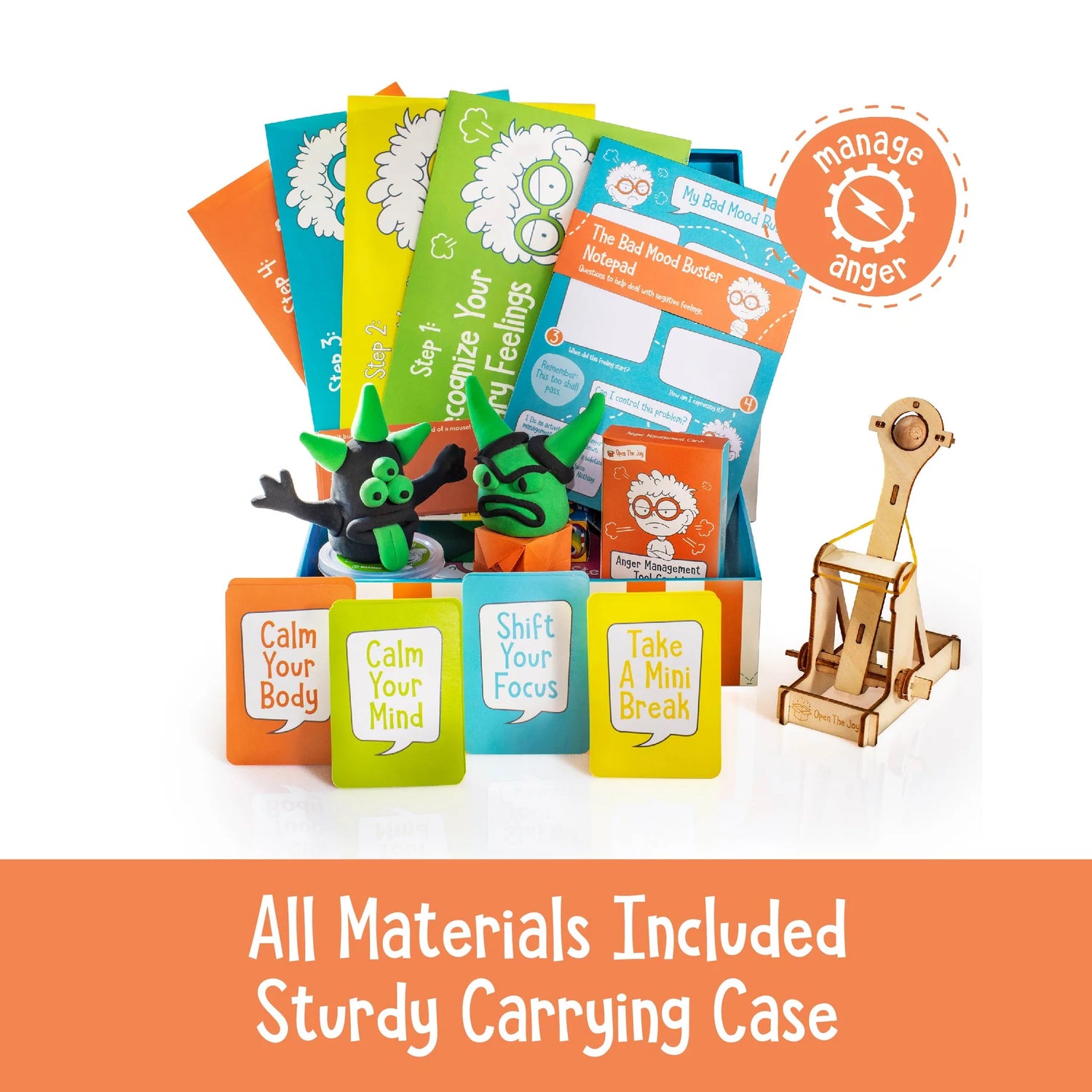- Kit Includes: 5 instruction cards, 2 tubs of air dry putty, Deck of 52 anger management cards, 50 sheets assorted colour origami paper, DIY wooden catapult, 50 sheet bad mood buster notepad
