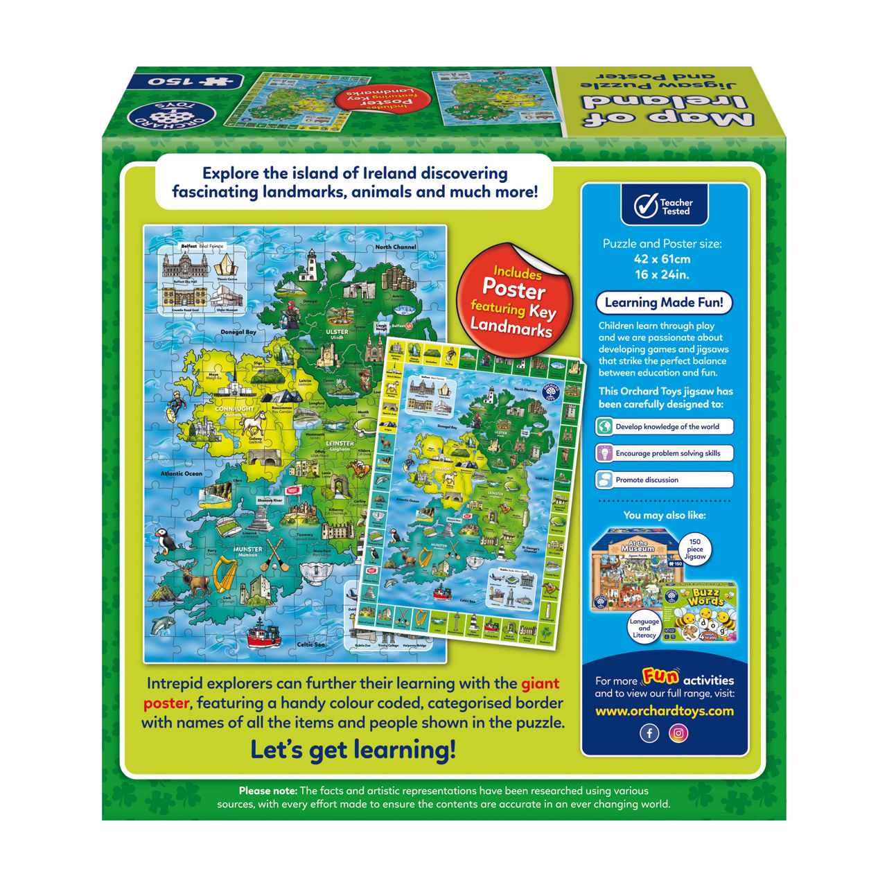 Includes a bonus giant poster of the Ireland map which makes for a perfect for wall display. Features a helpful learning guide to enhance the educational experience and spark meaningful conversations about Ireland's rich heritage and landscape.