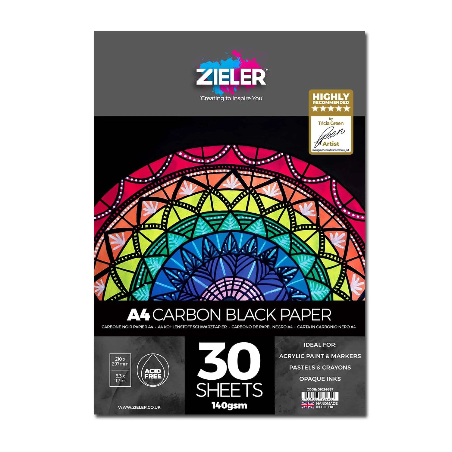 Zieler Carbon Black Cartridge Paper Pads contains 30 sheets of smooth, crisp, matt black sheets which are perfect for: