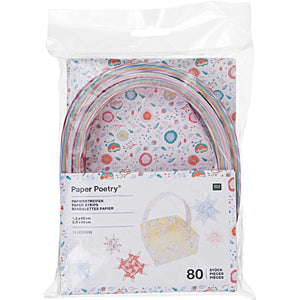 40 strips of 1.5x45 cm and 40 strips of 2.5x86 cm paper, featuring 10 distinct designs, are included.
