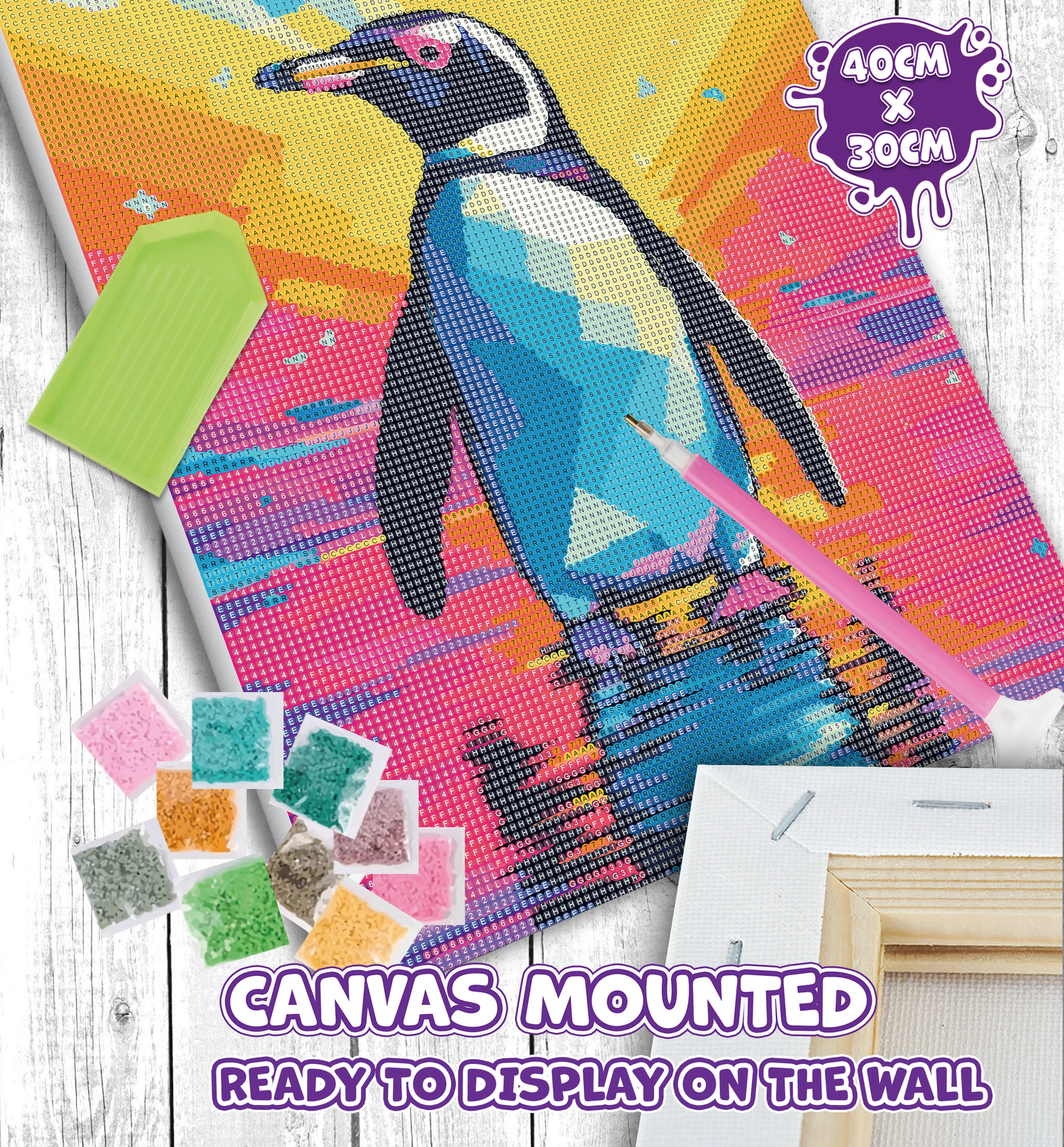 40cm x 30cm Penguin canvas mounted Diamond Painting kit is the perfect rainy day activity.