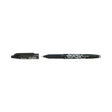 The black Pilot Frixion ballpoint pen contains erasable ink. This special ink disappears with warm friction. This makes it possible to erase mistakes made with the plastic back of the pen and then correct them. The ballpoint pen with black ink has a loose cap with clip.