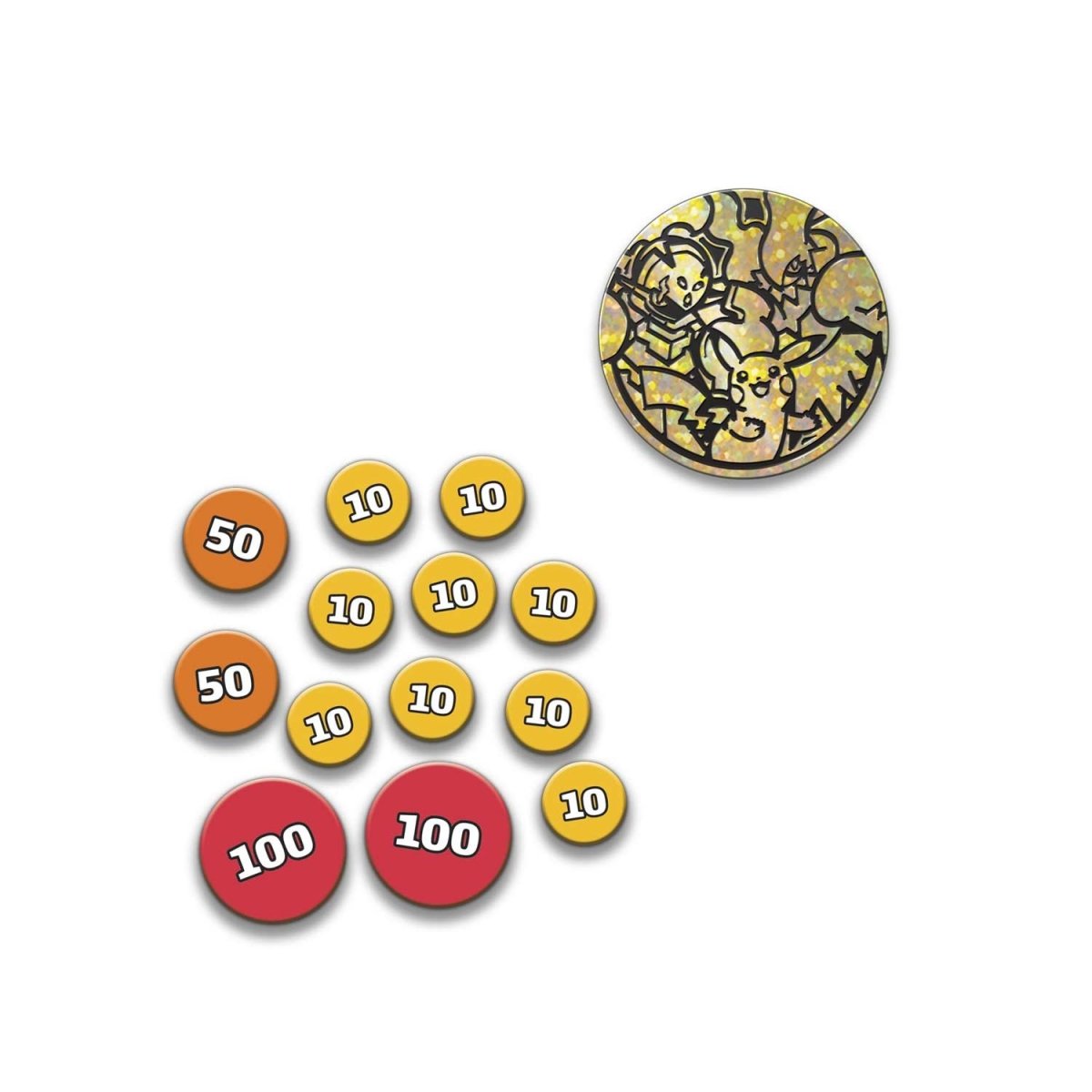 - 1 large metallic coin featuring Armarouge, Pikachu, and Darkrai