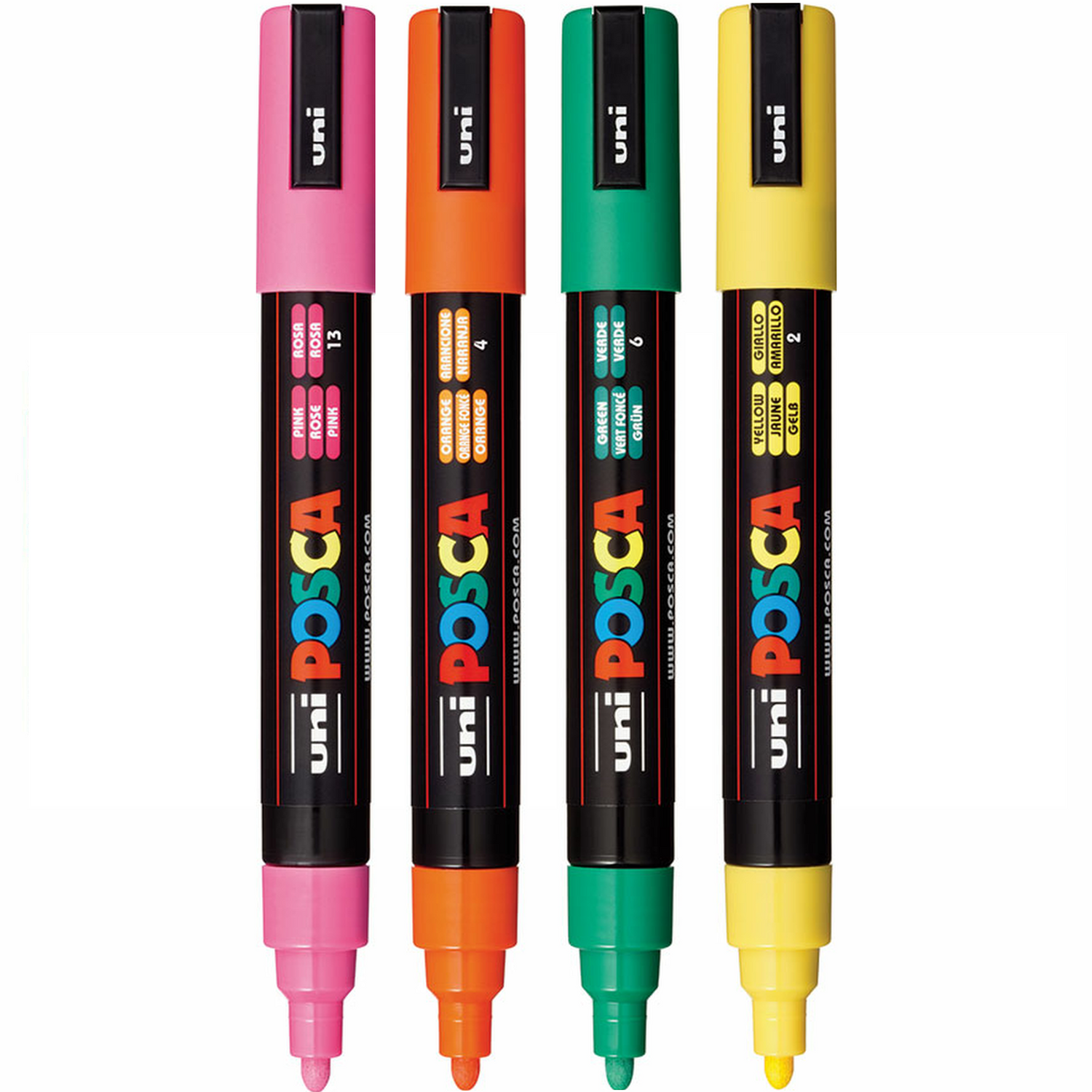 - Posca Colour Block Pack of 4: Pink, Orange, Green and Yellow