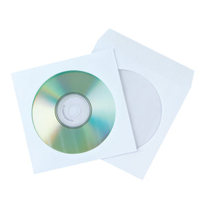 Q-Connect CD Envelopes. protective envelopes for the safe storage of CDs. Manufactured from paper with a slot in flap keeping contents free from dust etc. Colour - White/Clear.