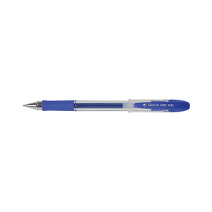 Q-Connect Quick Dry Gel Pen with transparent barrels comfortable rubber grips and instantly drying gel ink. Ink Colour: Blue.