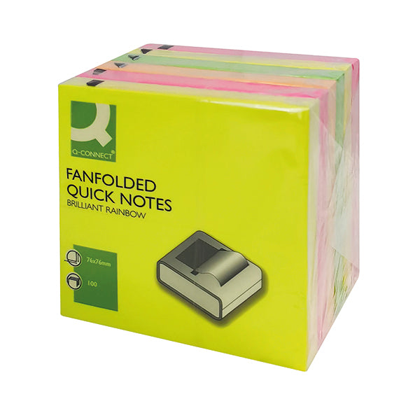 Q-Connect Fanfold Notes Assorted (Pack of 6) 48201030. Size: 75 x 75mm. Adhere to most surfaces and remove cleanly. Pop up design for quick access. For use in Q-Connect fanfold dispenser. 100 sheets per pad.