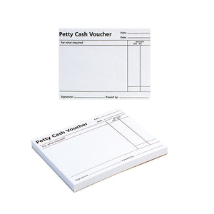 Vouchers for cash payments. Top quality white paper. Hardback cover for sturdy surface. Pre-printed with date cash amount signature etc. 100 sheets per pad pack of 10 pads.